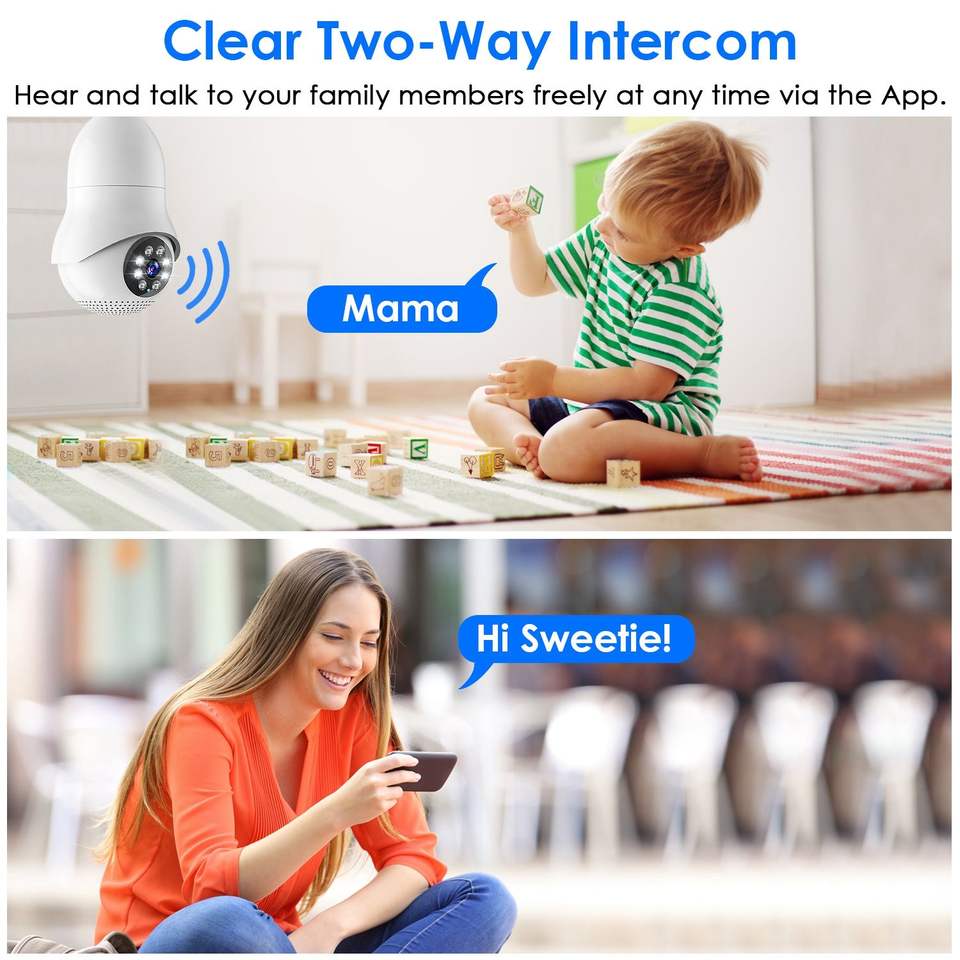 กล้องวงจรปิด E27 WiFi IP แบบแพน-ทิลท์ ความละเอียด 1080P FHD พร้อมเสียงสองทาง มองเห็นในเวลากลางคืน ไฟส่องสว่าง ตรวจจับความเคลื่อนไหว เสียงสองทาง มองเห็นในเวลากลางคืน ไฟส่องสว่าง