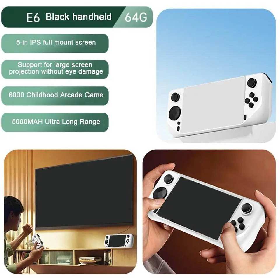 เครื่องเล่นเกมพกพา E6 ระบบ Linux หน้าจอ 5 นิ้ว ความจุ 64GB พร้อมเกมคลาสสิคย้อนยุคกว่า 6000 เกม รองรับเกม PSP/N64
