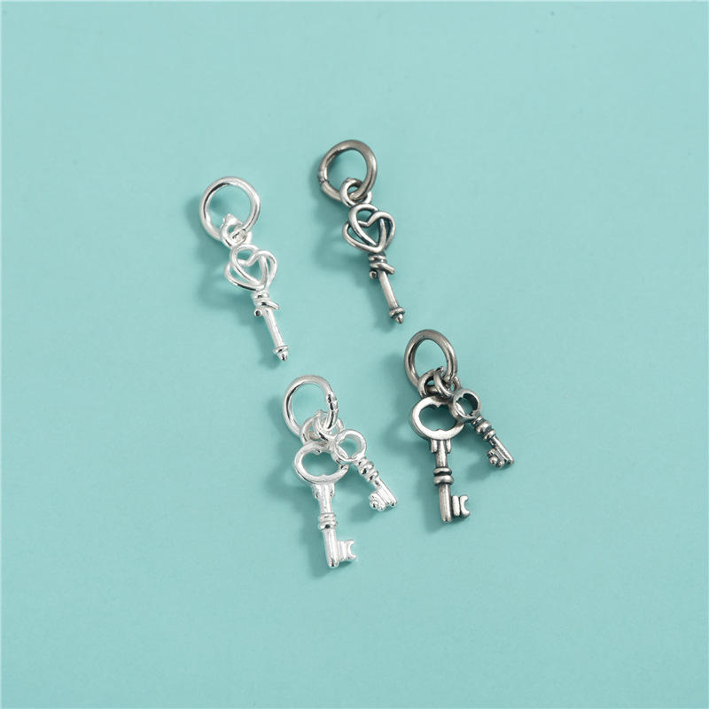 จี้กุญแจคู่รัก E689 925เงินสเตอร์ลิงรูปหัวใจเงินไทยสำหรับเครื่องประดับแฟชั่น