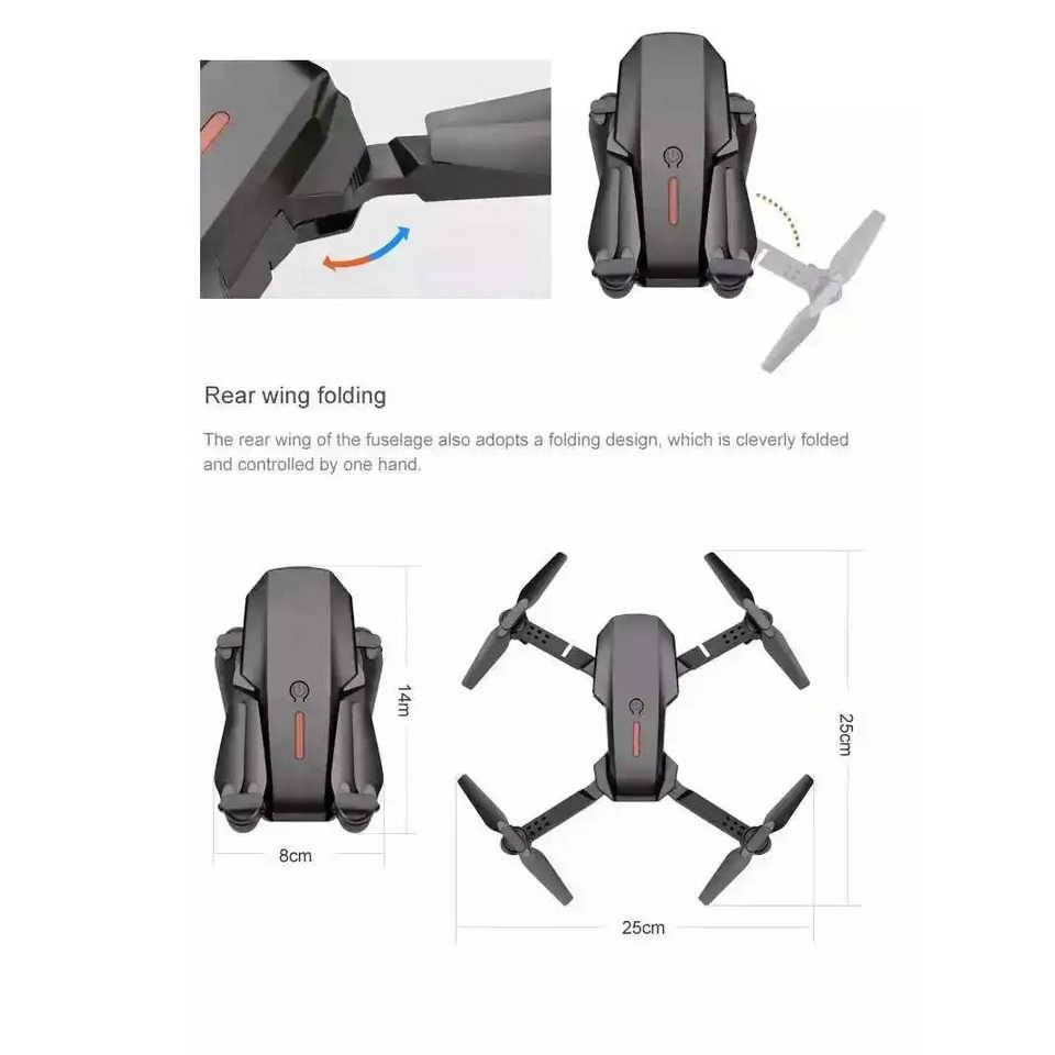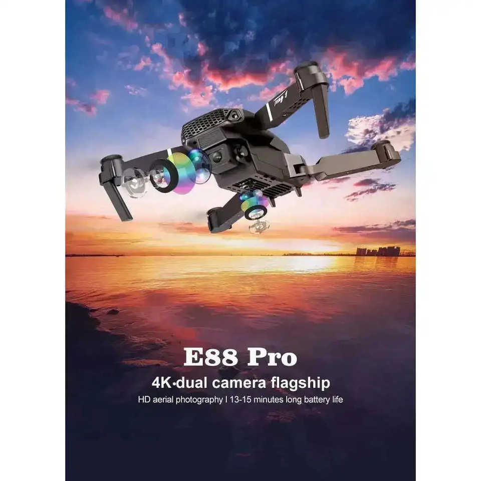 โดรนพับได้ E88 Pro Mini กล้อง 4K ระยะส่งสัญญาณ 10 กม. ใช้งานกลางแจ้ง พร้อมรีโมทคอนโทรลและกระเป๋าใส่