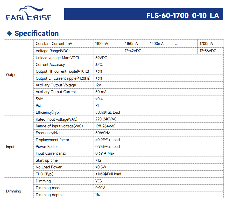 FLS-60-1700 0-10 LAหมายเลขรุ่น
