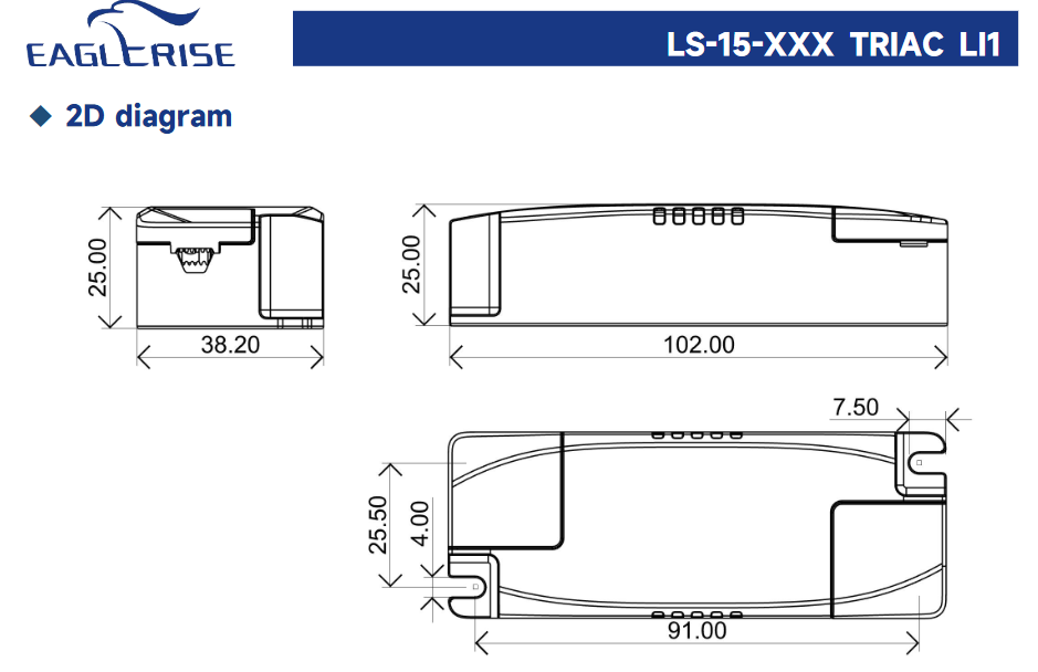 Eaglerise LS-15-250ทดลอง LI1 LS-15-700ทดลอง LI1เอาท์พุท14-40V 15W Triac Dimming Power Supply