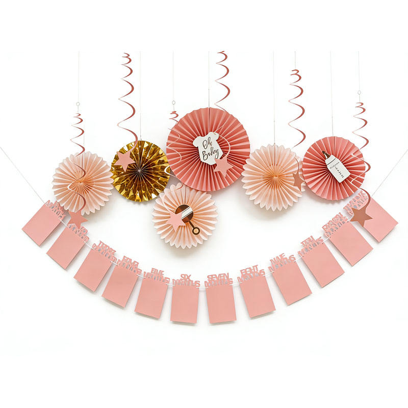 EAST TERN ชุดตกแต่งงานวันเกิดครบรอบ 1 ขวบสำหรับเด็กผู้หญิง 13 ชิ้น สีพีช พร้อมพัดกระดาษลายวน ราคาโรงงาน ทนทาน