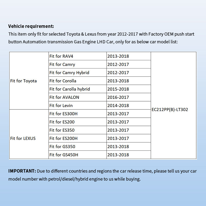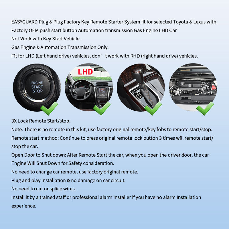 EASYGUARD รีโมทสตาร์ทแบบเสียบใช้งานได้ทันที สำหรับรถยนต์ RAV4/Camry/Corolla/AVALON/Levin เครื่องยนต์เบนซิน เกียร์อัตโนมัติเท่านั้น
