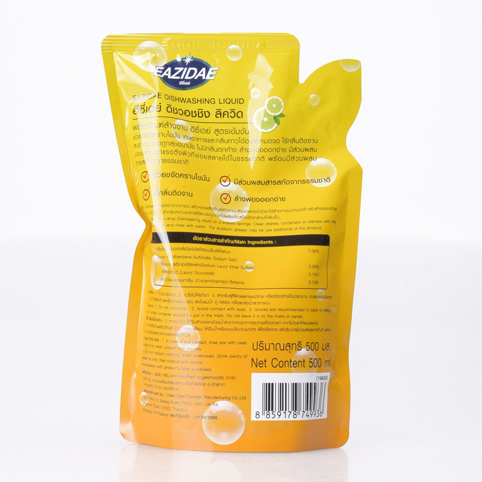 น้ำยาล้างจาน eazidae ขนาด500มล. ส่วนผสมออกฤทธิ์5% 15% ผลิตภัณฑ์จากไทย