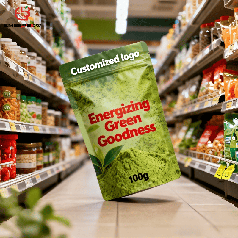 Ebb กระเป๋าเกรดอาหารกันความชื้นซิปซีลได้สำหรับอาหารเสริมผงชาเขียว30กรัม