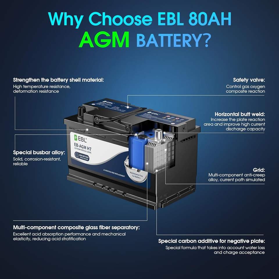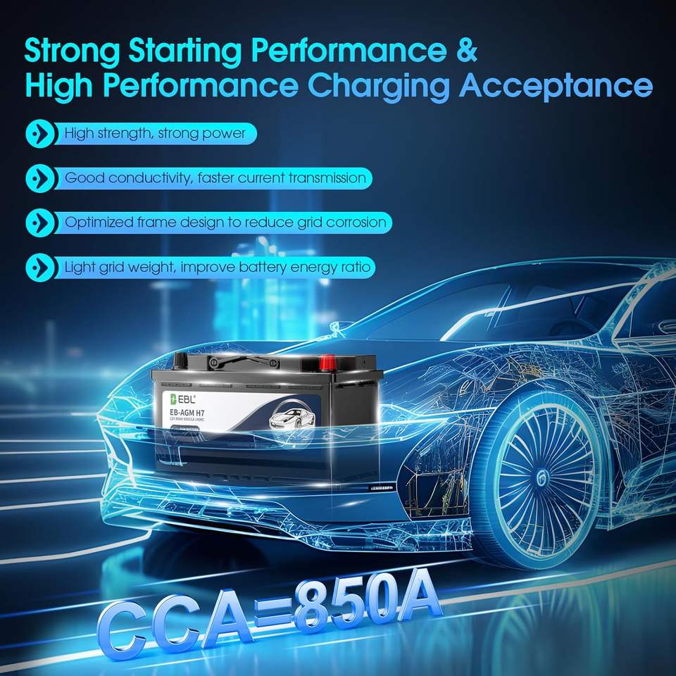 แบตเตอรี่รถยนต์94R กลุ่ม ebl BCI 12V ชุดประสิทธิภาพ80Ah แบตเตอรี่ agm 140RC 850CCA พลังงานสูงขนาด H7บำรุงรักษาฟรี12.8V SMF