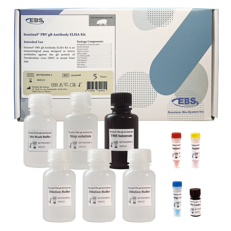ชุดทดสอบแอนติบอดี EBS Sentinel PRV GB แบบ ELISA สำหรับสุกร ได้รับการรับรองมาตรฐาน ISO ความไว 100% อายุการเก็บรักษา 18 เดือน สำหรับใช้ทางการแพทย์ ผลิตในไต้หวัน