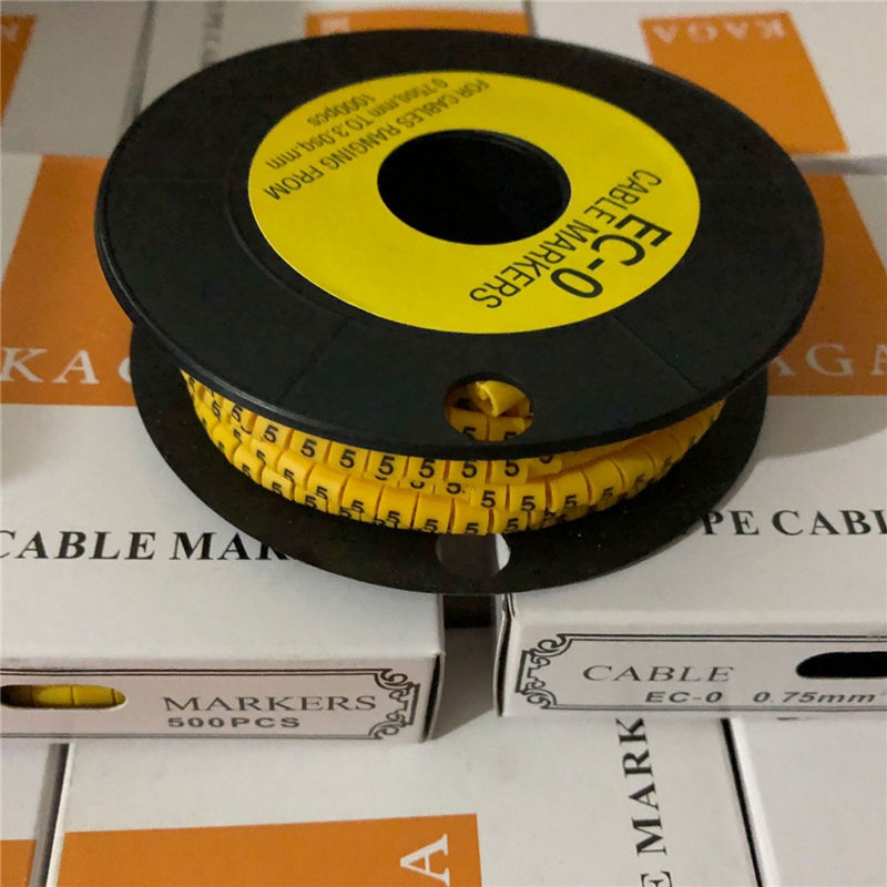 ปลอกมาร์กเกอร์สายไฟพีวีซี EC-0สัญลักษณ์ที่แตกต่างกันทนความร้อนได้ถึง85C