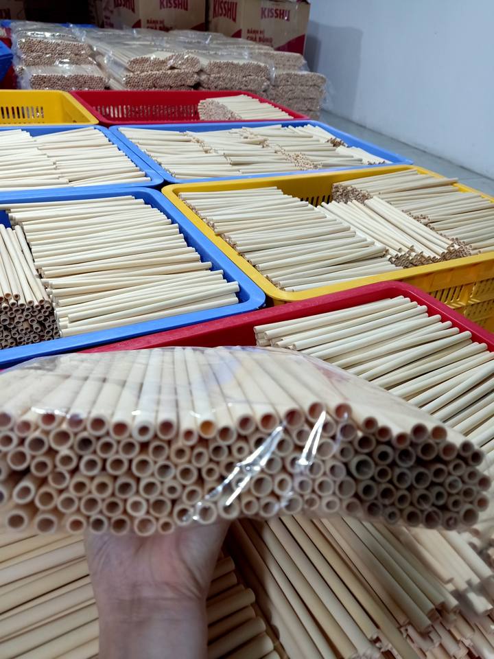 หลอดดูดทำจากไม้ไผ่เป็นมิตรกับสิ่งแวดล้อมไม่มีสารเคมีจากฟาร์มดอกบัวสีน้ำเงิน2025เวียดนาม
