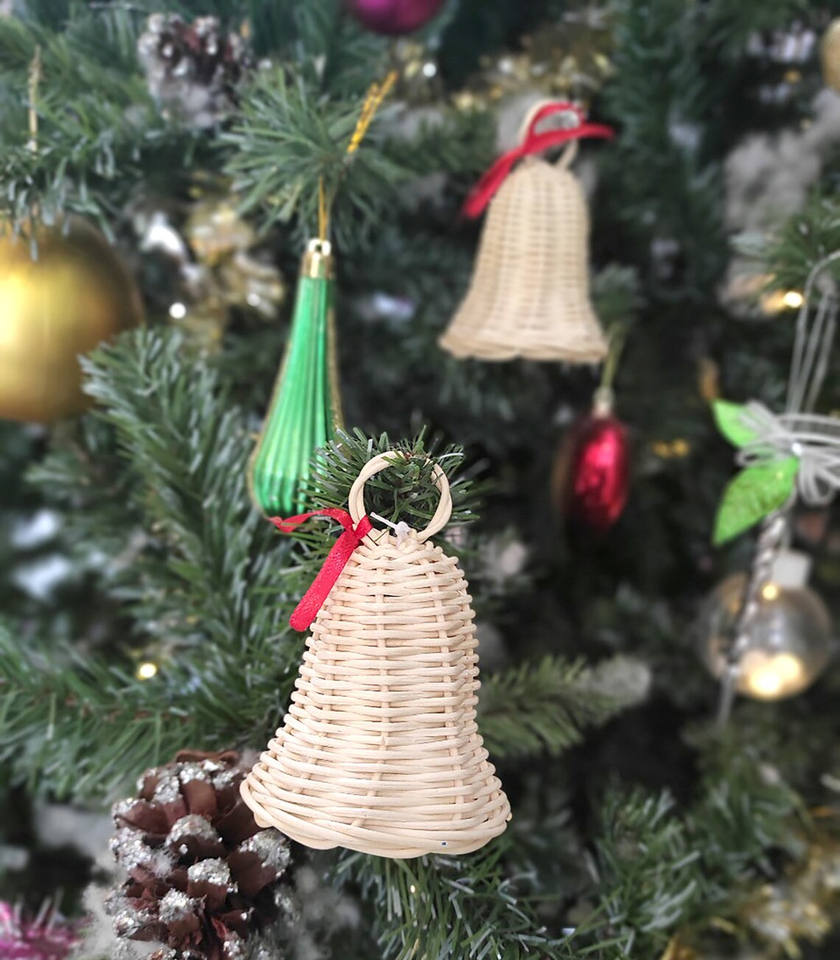 กระดิ่งหวายคริสต์มาสทำมือตกแต่งวันหยุดตามธรรมชาติเป็นมิตรกับสิ่งแวดล้อม