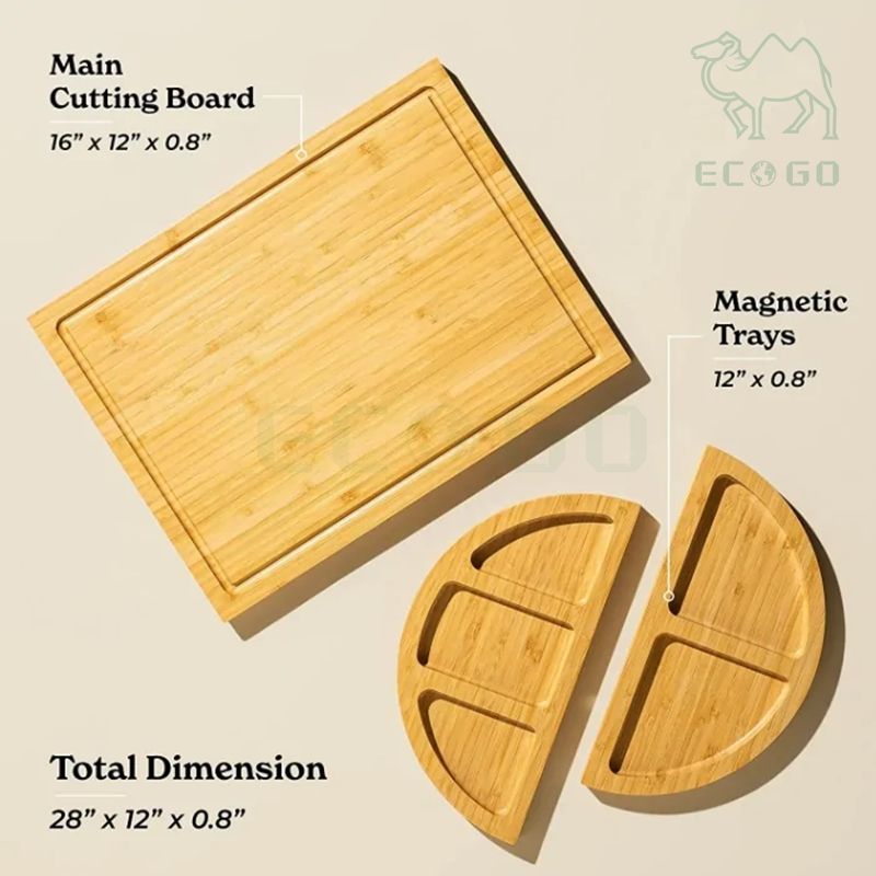 ชุดของขวัญทำอาหาร ECO GO 3 in 1 แผ่นรองหั่นอาหารไม้ไผ่และเขียง ถาดเสิร์ฟอาหาร ชุดเขียงชีสสำหรับงานปาร์ตี้