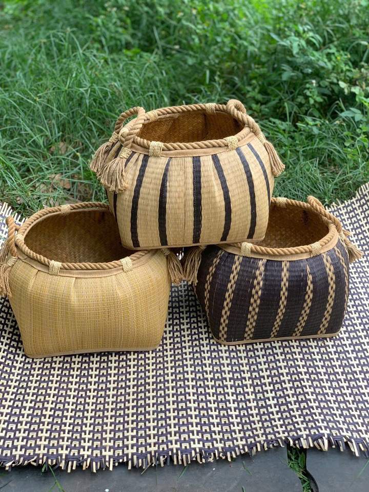 ECO PRODUCTS Woven Bamboo Food Storage Basket With Cover Tent Fruit Bread Serving Tray Folding Set With Lid Decorative