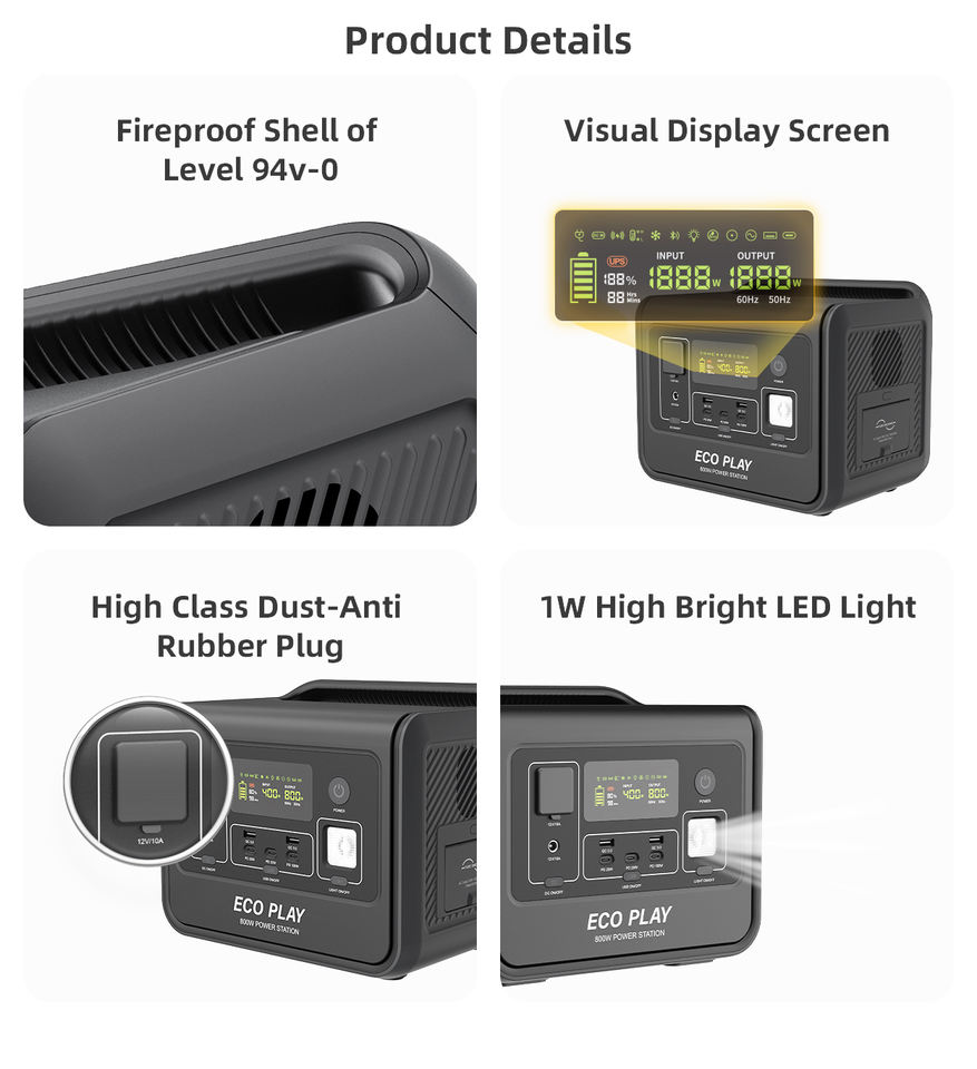 ECOPLAY 800W Portable Station 512Wh Safe LiFePO4 MPPT Solar Panel Pure Sine Wave for Car Camping RV Tailgating Off-Grid