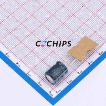 ตัวเก็บประจุอิเล็กโทรไลต์อะลูมิเนียมแบบ Through-Hole รุ่น ECR1EGK221MFA100012 ขนาด D10xL12.5 มม. 220uF 20% 25V 5 มม.