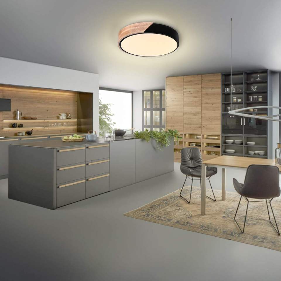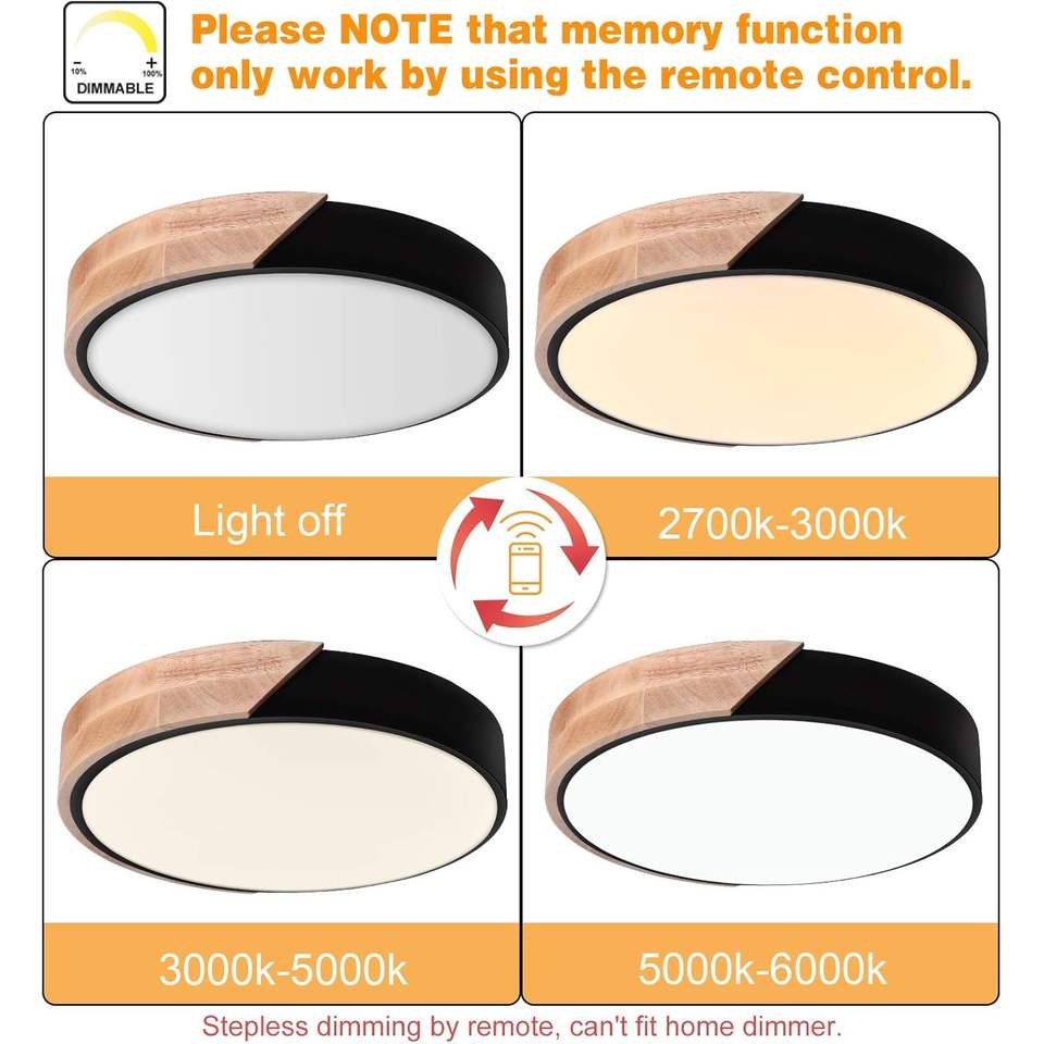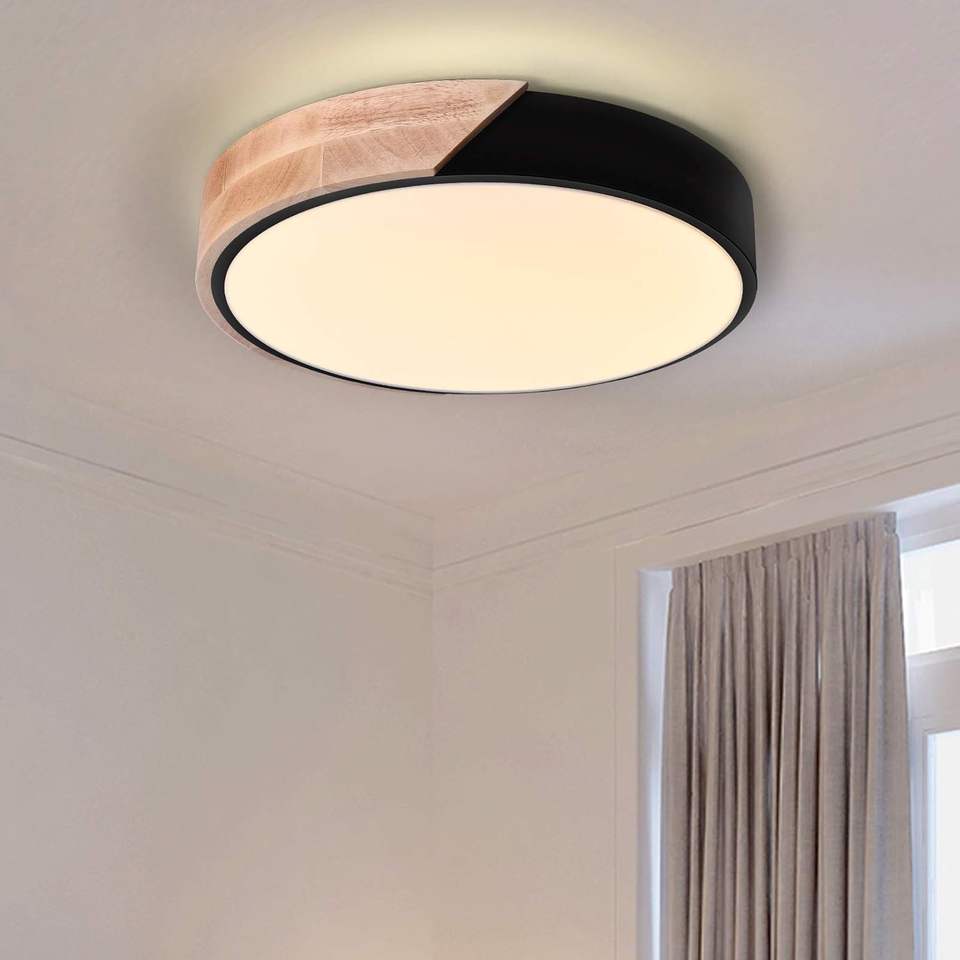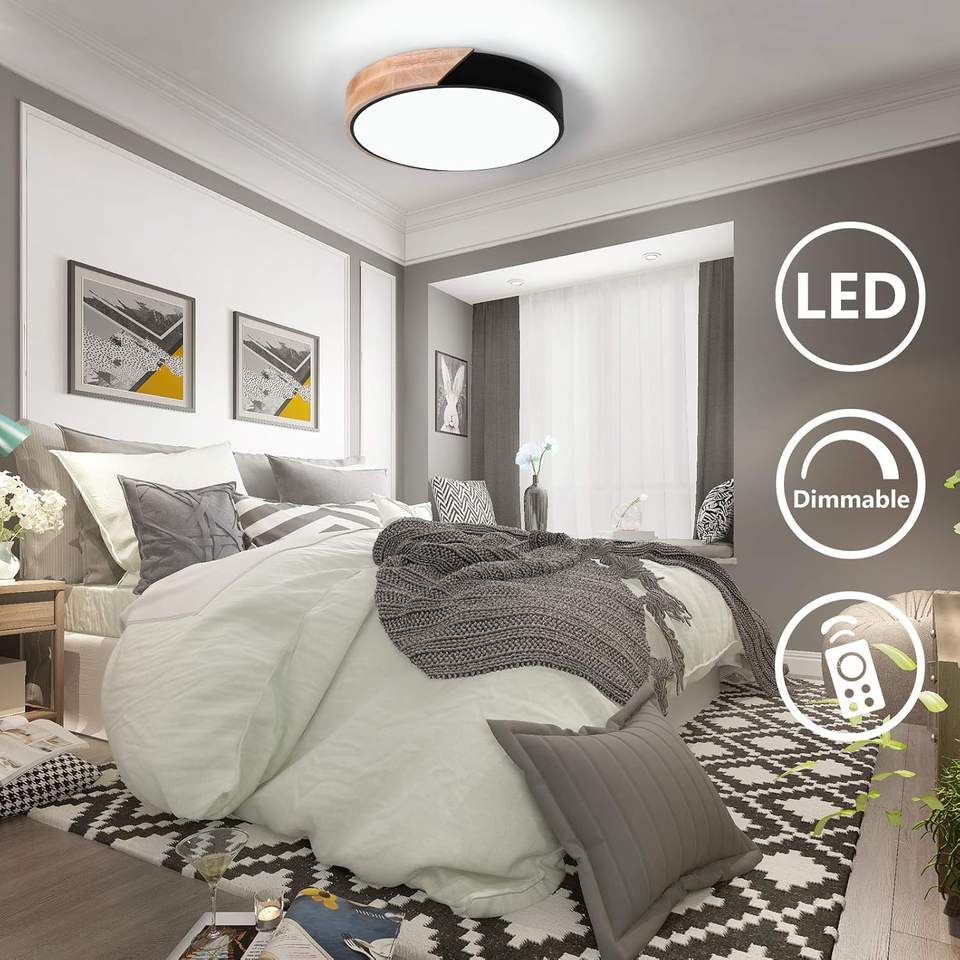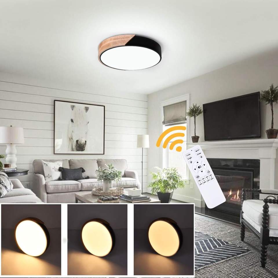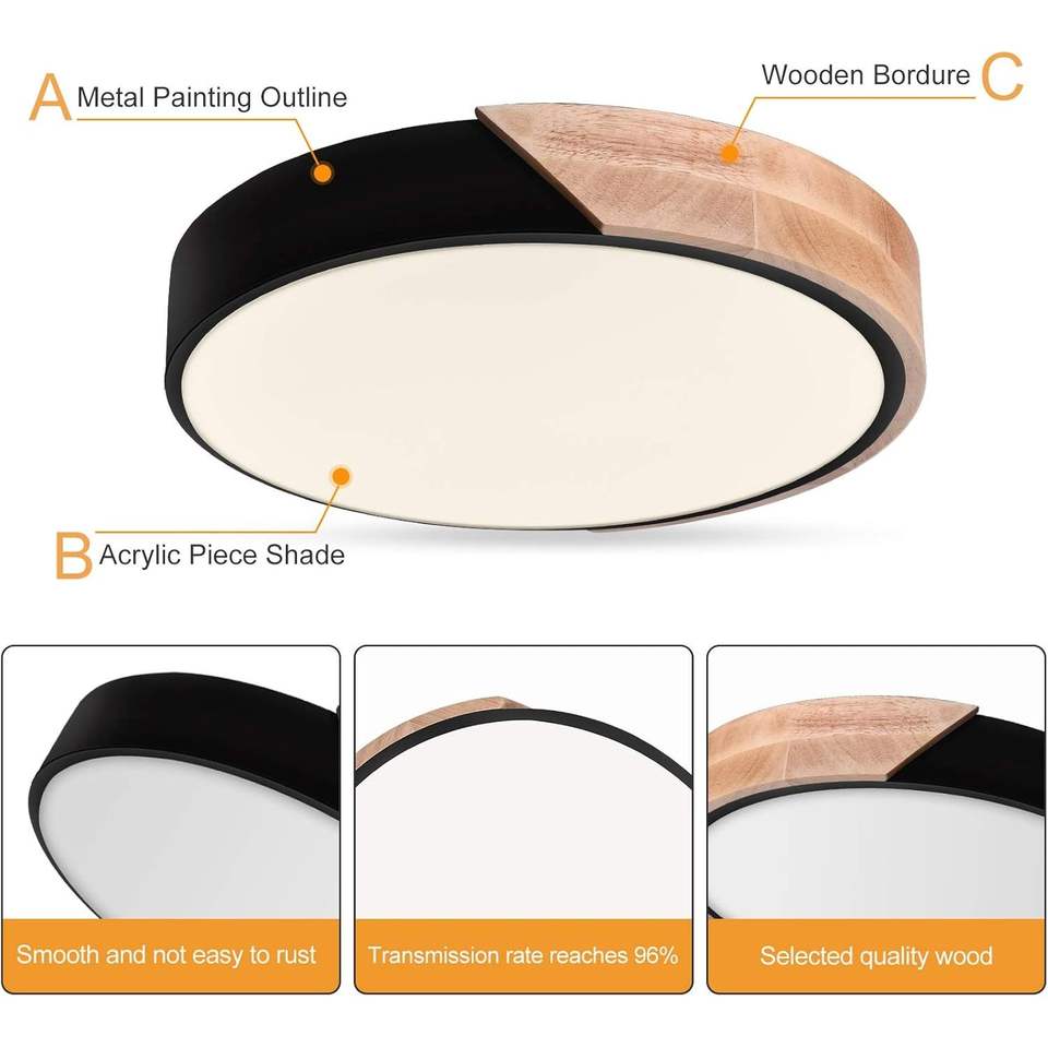 EDISLIVE 11-inch Modern Minimalist LED Flush Mount Ceiling Light Dimmable Wood Metal Acrylic 6000K Color Temperature 18W IP44