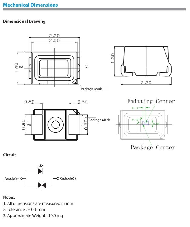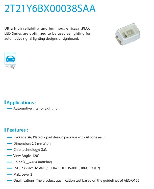 ชื่อผลิตภัณฑ์:PLCC พลังงานต่ำ <0.5W 2214 2Pin
