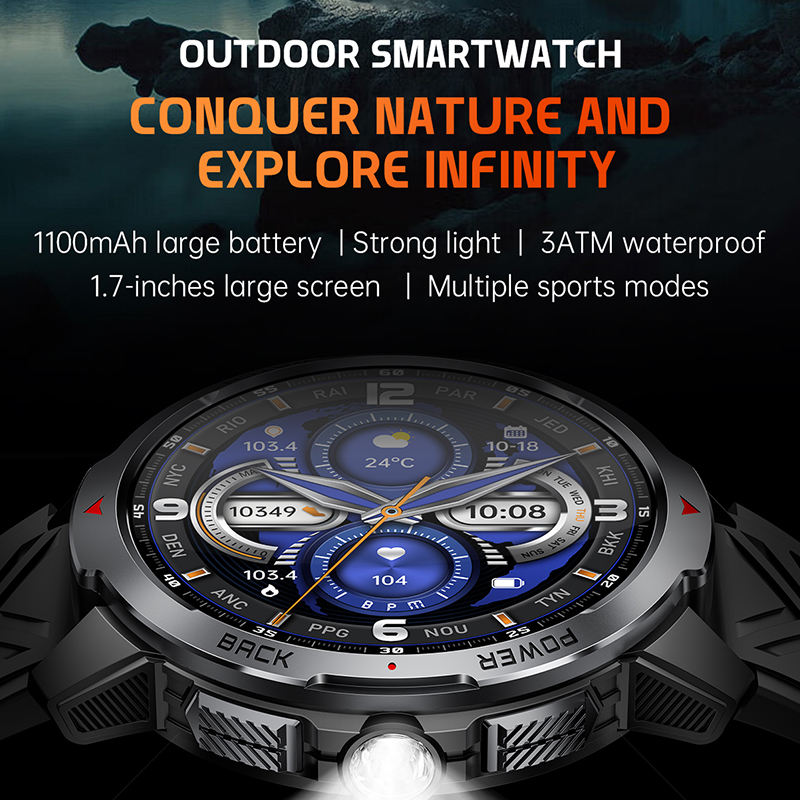 EDS KT88 Outdoor Compass Sport Smartwatch 1100mAh Battery 3ATM 1.7-inch Large Screen SOS Mode BT5.3 Multiple Sports Modes China