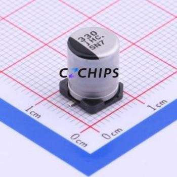 ตัวเก็บประจุอิเล็กโทรไลต์อะลูมิเนียมแบบ SMD รุ่น EEEHC0J331P, ขนาด D8xL10.2 มม., 330uF, 20%, 6.3V, 230mA-120Hz