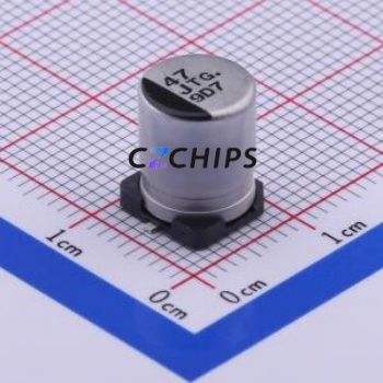 ตัวเก็บประจุอิเล็กโทรไลต์อะลูมิเนียมแบบ SMD รุ่น EEETG1J470UP, ขนาด D8xL10.2 มม., ความจุ 47uF, ค่าความคลาดเคลื่อน 20%, แรงดันไฟฟ้า 63V, กระแสไฟฟ้า 100mA-100kHz