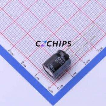ตัวเก็บประจุอิเล็กโทรไลต์อะลูมิเนียมแบบ Through-Hole รุ่น EEUFS1K101 ขนาด D10xL12.5 มม. 100uF 20% 80V 600mA-100kHz