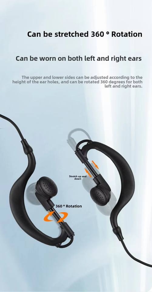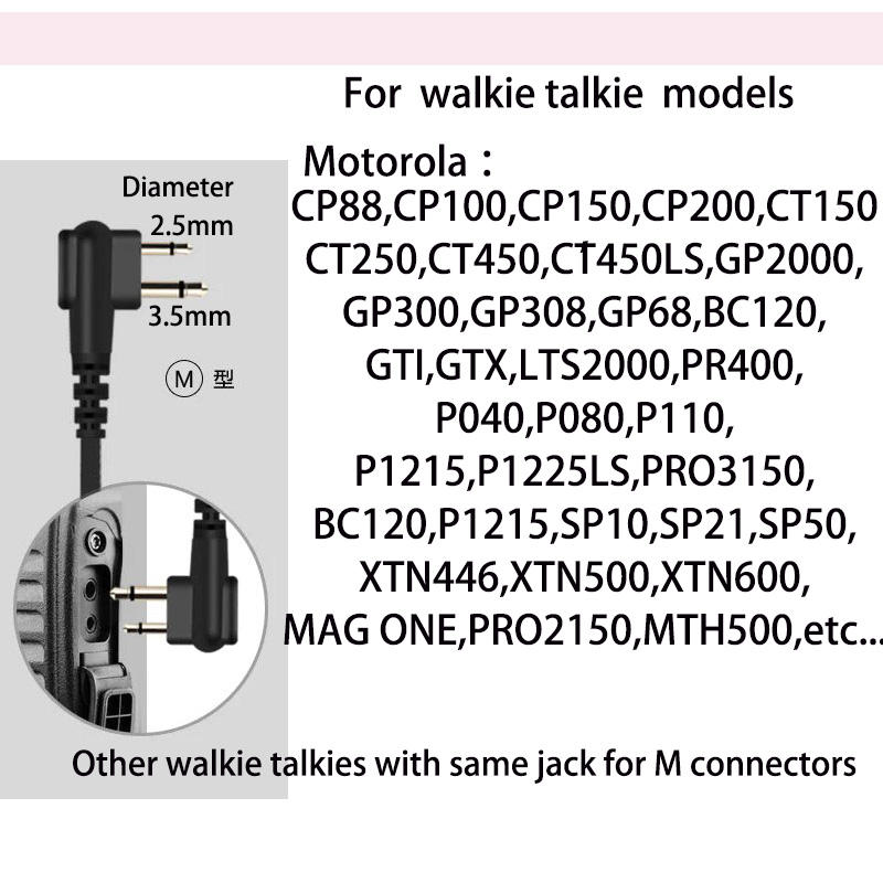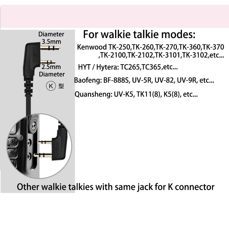 EG19หูฟัง K-M แบบมีสาย, หูฟัง walkie-talkie 2.5มม. 3.5มม. ทนต่อการดึงอุปกรณ์เสริมลวดสำหรับหูซ้ายขวา