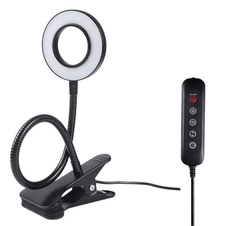 ไฟ LED สำหรับใช้ภายในอาคาร EGH ขนาด 120 มม. โคมไฟตั้งโต๊ะแบบหนีบปรับได้ 360 องศา พร้อมขาตั้งแบบโค้งงอได้ โคมไฟทรงวงแหวนสีขาว สำหรับห้องอ่านหนังสือ