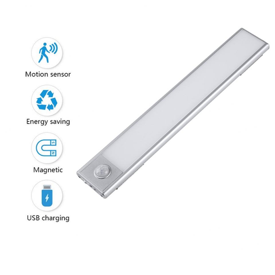 ไฟตู้ LED แบบบางพิเศษ EGH สำหรับภายในอาคาร ชาร์จผ่าน USB ไร้สาย พร้อมเซ็นเซอร์ตรวจจับความเคลื่อนไหว ควบคุมแบบแบ่งส่วน วัสดุ ABS สีขาว ปรับความสว่างได้