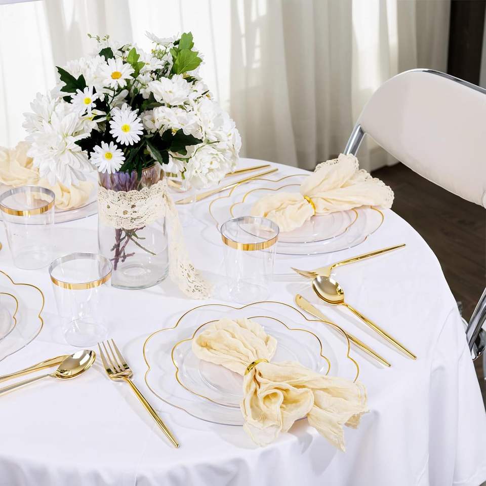 จานพลาสติกสีทองใส 180 ชิ้น ชุดจานชามพลาสติกสีทองใสแบบใช้แล้วทิ้งสำหรับงานปาร์ตี้