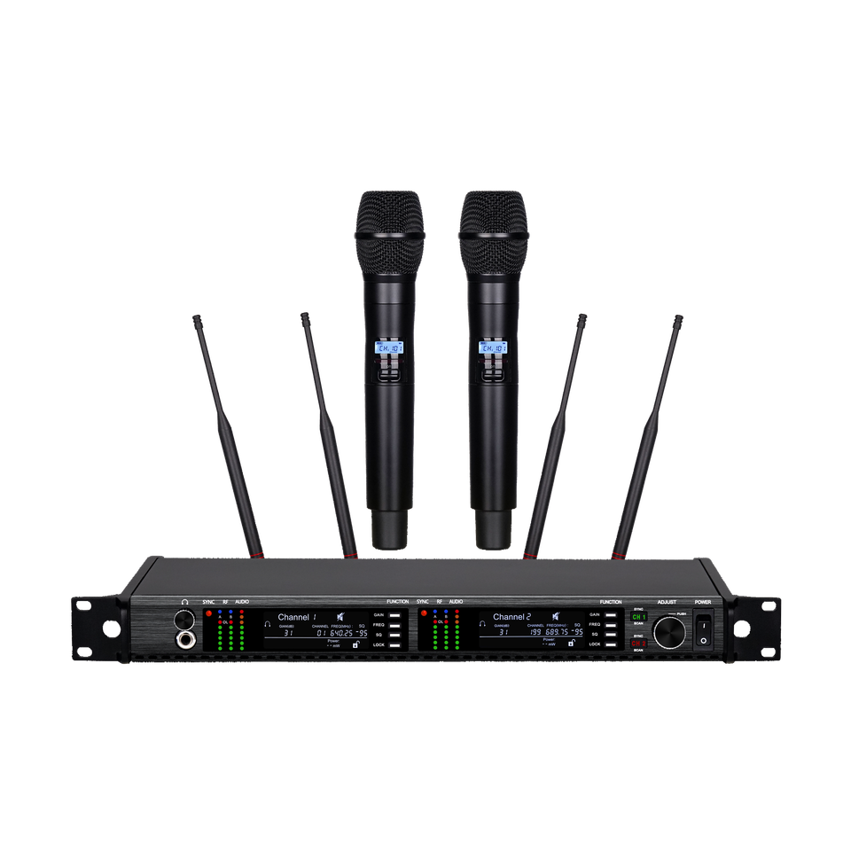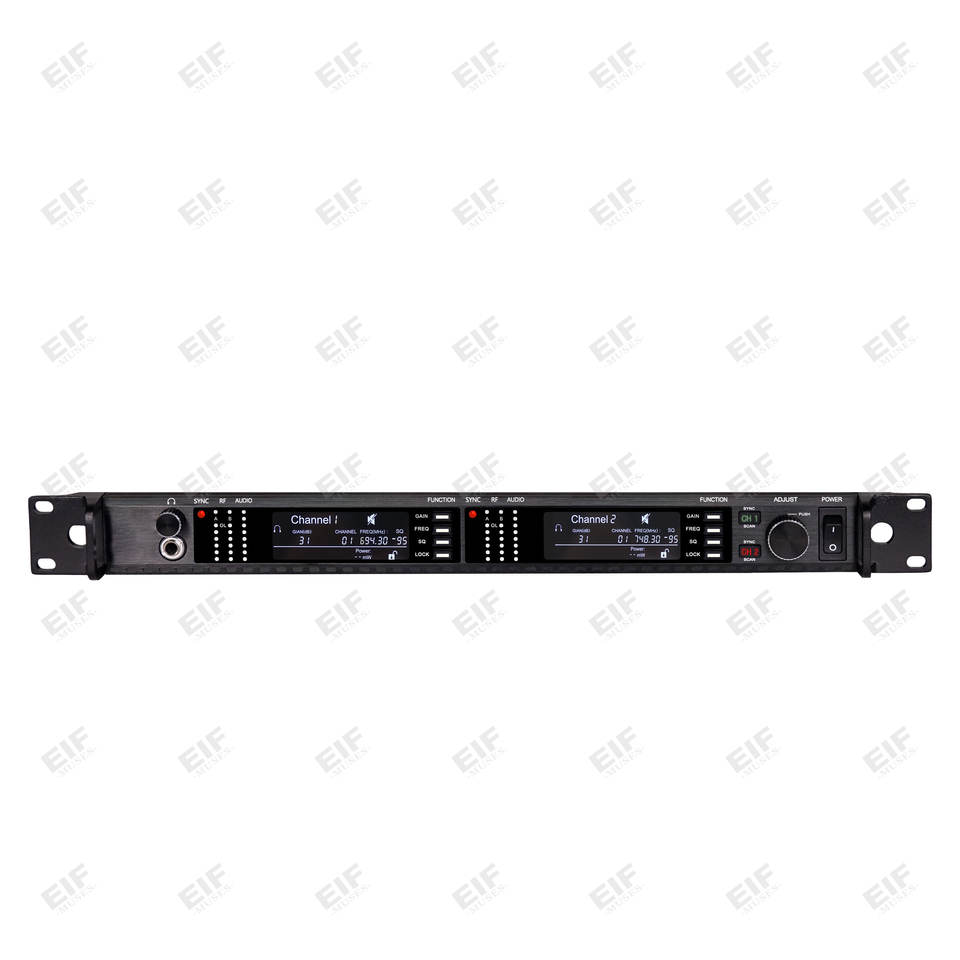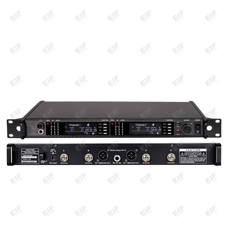 ไมโครโฟนไร้สาย EIF AD4D-2 XLR ตัดเสียงรบกวน น้ำหนักเบา ตัวไมค์โลหะ ไมโครโฟนแบบมือถือ ช่องสัญญาณคู่ UHF ดิจิตอล สำหรับคาราโอเกะ