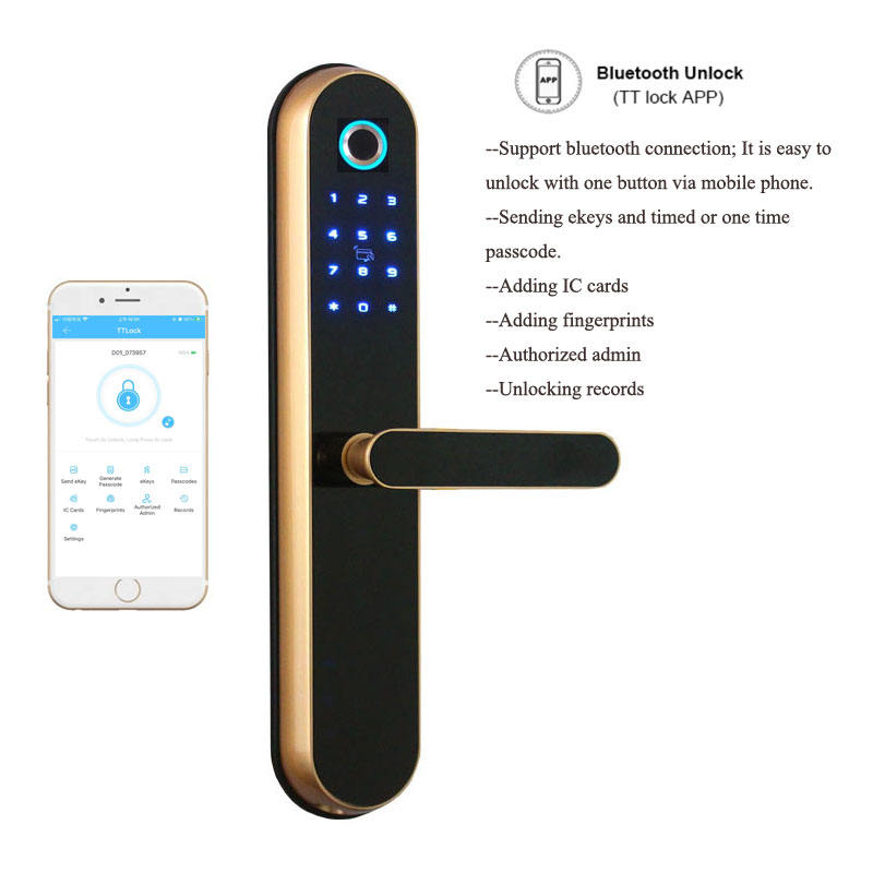 Unlock way:APP +Fingerprint + Password + Card + Key