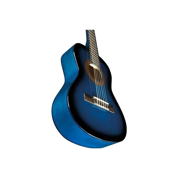 กีตาร์ EKO-กีตาร์คลาสสิก CS-2สีน้ำเงินสุดพร้อมด้วยลินเดนด้านบนด้านหลังและด้านข้างของคอเบิร์ชและฟิงเกอร์บอร์ดและผิวมัน