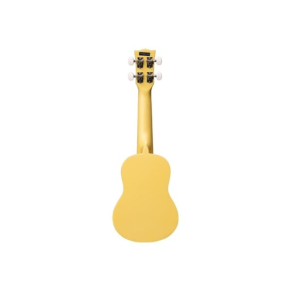 กีตาร์กีตาร์-อูคูเลเล่สีเหลืองโซปราโนะสำหรับกีตาร์อูคูเลเล่ที่ทำจากไม้อะกาโนพร้อมกีตาร์โพลียูรีเทนสีคอไม้มะฮอกกานี