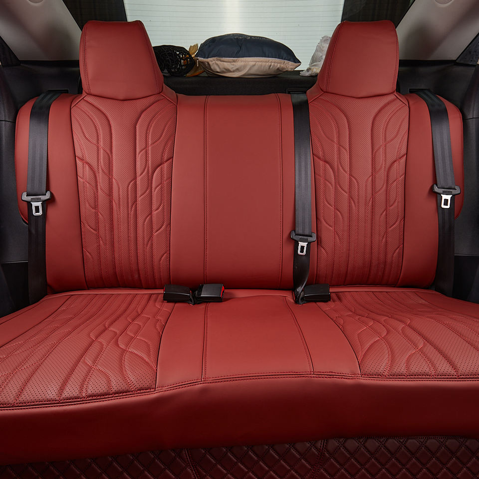 ที่หุ้มเบาะรถยนต์แบบกำหนดเองได้ที่นั่งในรถแบบมีแอร์แบ็กทรงเข้ารูปสีแดงสุดหรูของ ekr