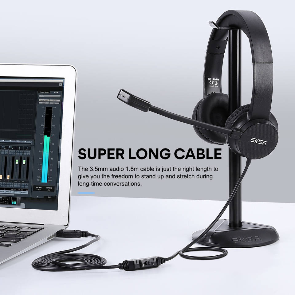 Eksa H12E หูฟัง PC แบบมีสายพร้อมไมค์ในตัวตัดเสียงรบกวนแบบ USB และ ENC สำหรับโทรเข้ากลางคอมพิวเตอร์สำนักงานหรือเล่นเกม