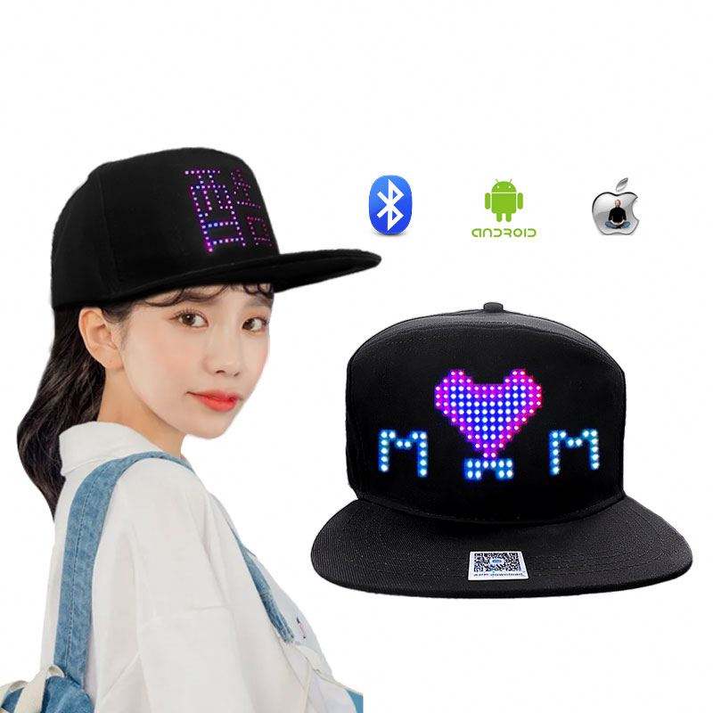 สินค้า El หมวกเบสบอล LED สำหรับควบคุมผ่านแอปบลูทูธ LED 7สี16X32แผ่นปักลายหมวกแนวแจ๊สปาร์ตี้