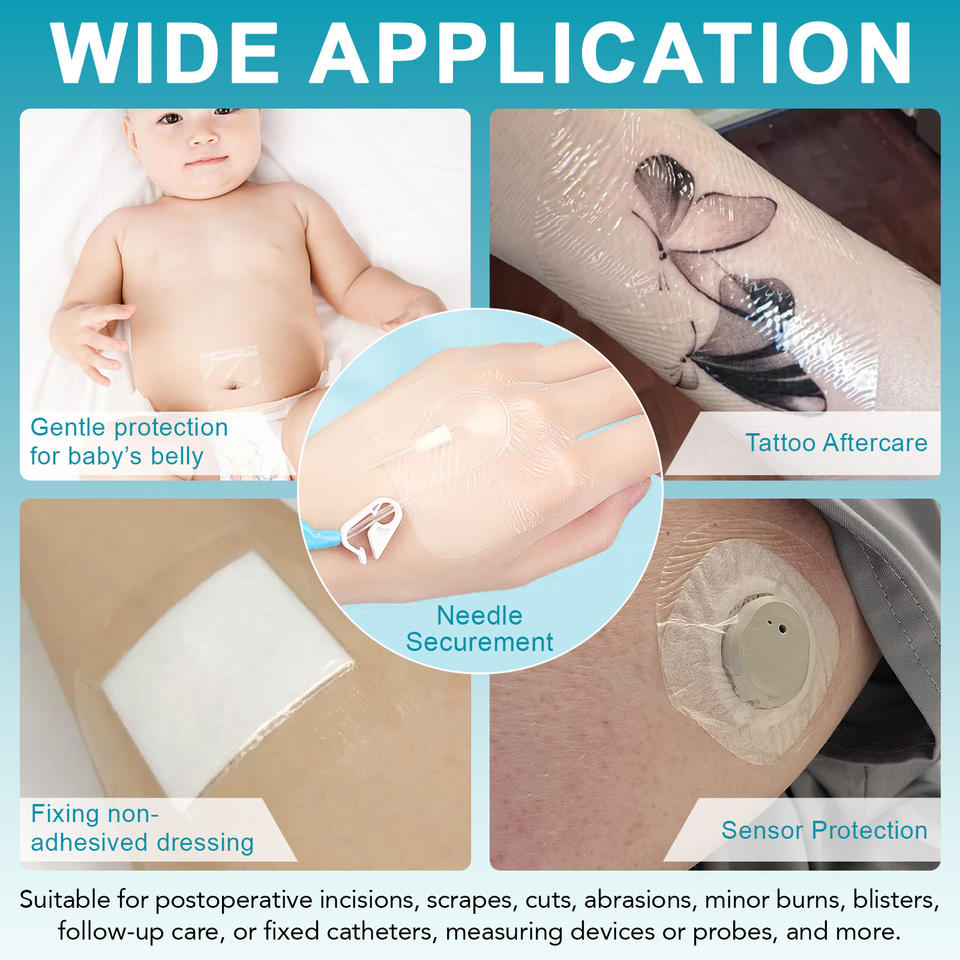 ELAIMEI แผ่นปิดแผลใสแบบกันน้ำ 50 ชิ้น สำหรับว่ายน้ำ อาบน้ำ ปิดแผลหลังผ่าตัด หรือปิดแผลสำหรับสายให้น้ำทางหลอดเลือดดำ
