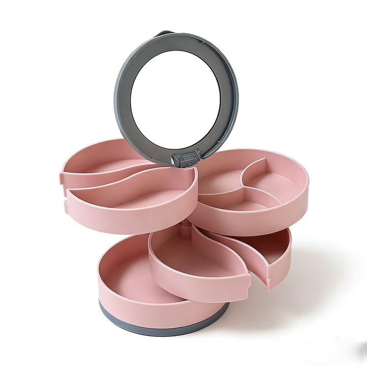 กล่องใส่เครื่องประดับ ELE QWEEN ดีไซน์หรูหรา หลายชั้น ผลิตจากพลาสติก แกะสลักลายสวยงาม หมุนได้ ป้องกันฝุ่น สำหรับเก็บต่างหู สร้อยคอ