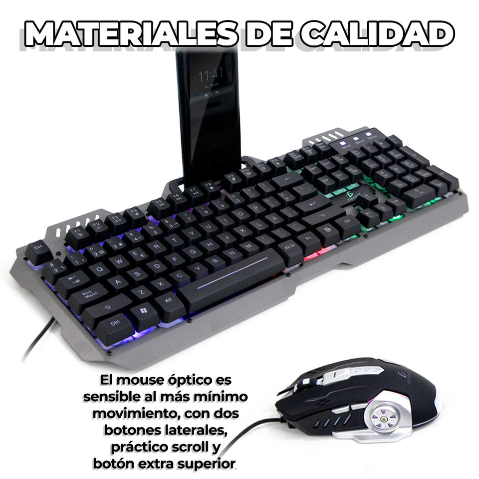 คีย์บอร์ดเกมมิ่งแบบมีสาย ELEGATE พร้อมเซ็นเซอร์ออปติคอล พร้อมเมาส์และที่วางโทรศัพท์มือถือ เม็กซิโก