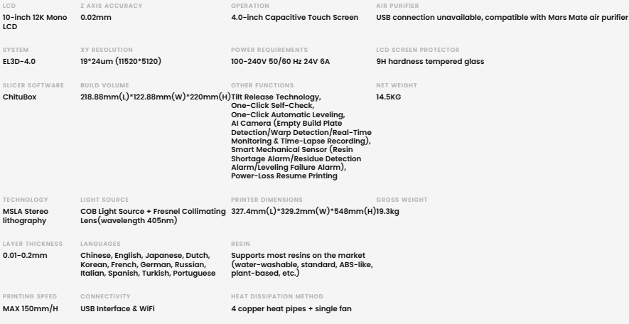 Elegoo Saturn 4 ultra 10นิ้ว12K โมโนจอแอลซีดีการสูญเสียพลังงานการพิมพ์เรซินปล่อยเรซินเครื่องพิมพ์3D