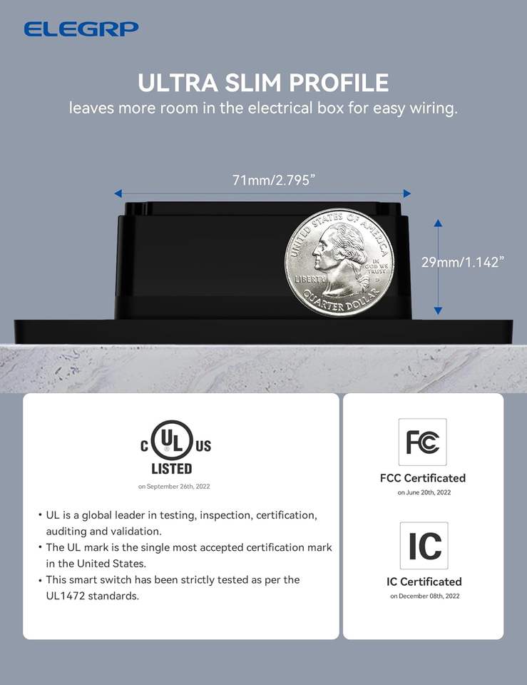 Elegrp สวิตช์ไฟหรี่อัจฉริยะแบบขั้วเดียวสวิตช์ติดผนังแบบ UL สำหรับไฟ LED ใช้ได้กับ Alexa และ Google Assistant