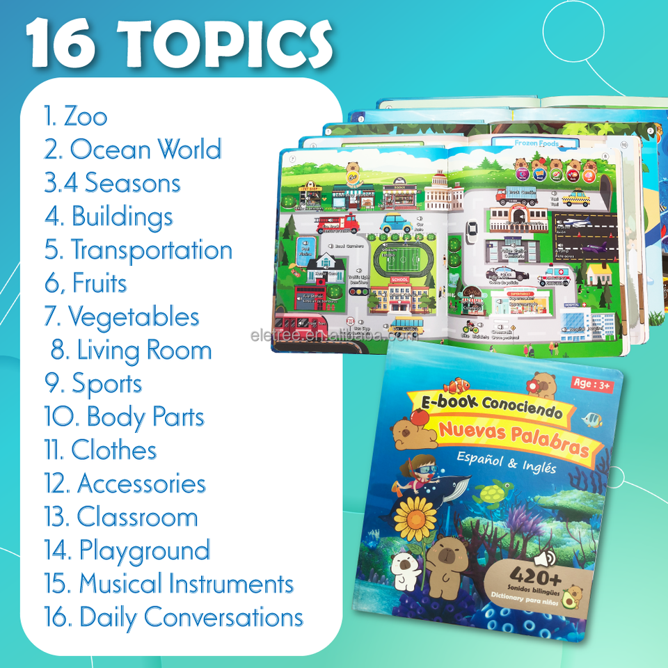 หนังสือเสียง ELETREE 420 คำ ภาษาสเปนและภาษาอังกฤษ หนังสืออิเล็กทรอนิกส์สองภาษา รู้จักคำศัพท์ใหม่ ของเล่นเสริมพัฒนาการด้านดนตรีสำหรับเด็ก