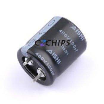 ตัวเก็บประจุแบบอิเล็กโทรไลต์อะลูมิเนียมแบบ Snap-in รุ่น ELH2GM101O25KT ชนิด Through-hole (THT) ขนาด D22xL25 มม. 100uF 20% 400V 10 มม.