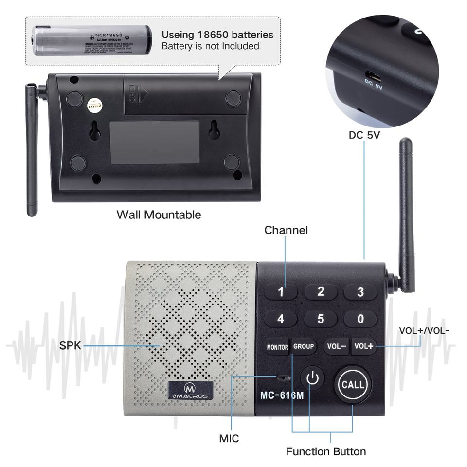 EMACROS แบบพกพากลางแจ้งในร่มอินเตอร์คอมระบบอินเตอร์คอมไร้สาย1000ฟุตสองทาง2ทางอินเตอร์คอมสนทนา
