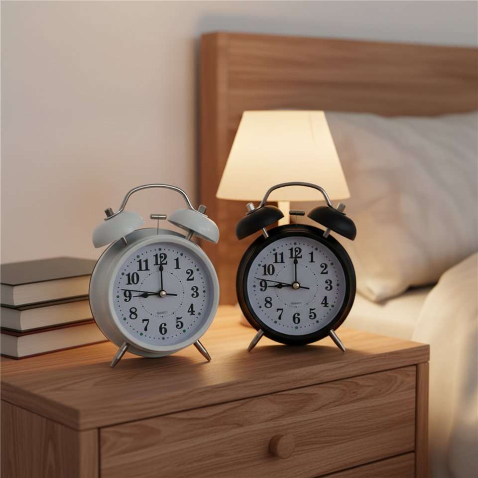 นาฬิกาปลุกตั้งโต๊ะแบบเข็ม ควอตซ์ โบราณ สำหรับเด็ก นักเรียน ห้องนอน แบบคลาสสิก โลหะ กระดิ่งคู่ เสียงดัง ยี่ห้อ EMAF Custom Face Table