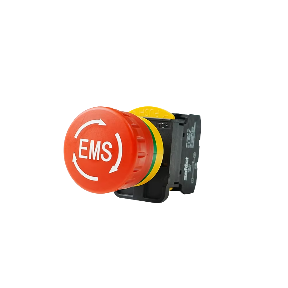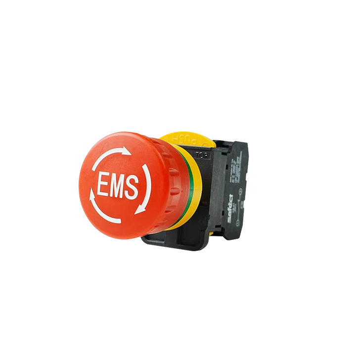 สวิตช์หยุดฉุกเฉิน EMS A22B-21-S ความเสถียรสูง ป้องกันการใช้งานผิดพลาด มาตรฐาน IP65 พร้อมตัวป้องกันโลหะ 6 หน้าสัมผัส 10A 24V ผลิตในเกาหลี