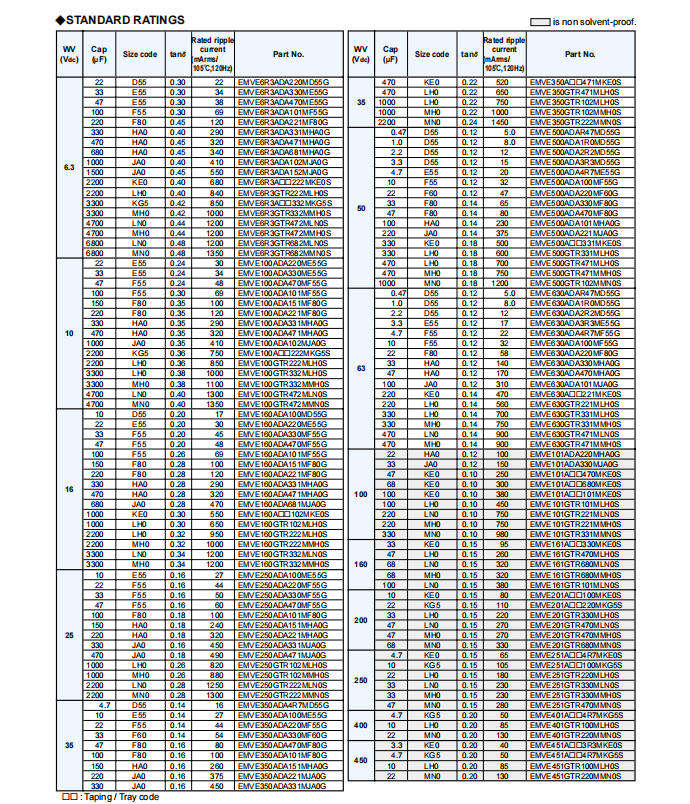 EMVE350ADA101MF80Gหมายเลขรุ่น