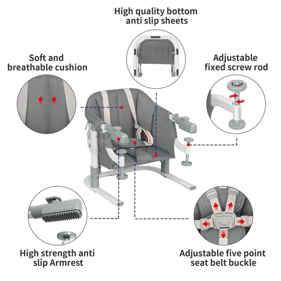 เก้าอี้ทานข้าวเด็กแบบพับได้ ได้รับการรับรองมาตรฐาน EN พร้อมตะขอเกี่ยวโต๊ะแบบพกพา เบาะเสริมสำหรับเด็กทารก