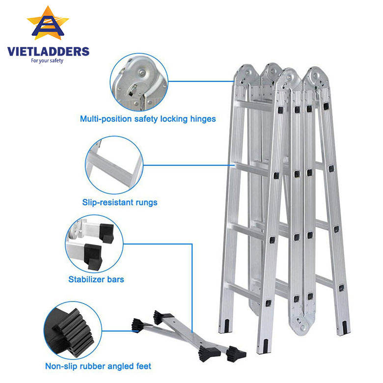 บันไดอลูมิเนียมอเนกประสงค์แบบพับได้ EN131 รุ่น VIETLADDERS NVLG-45A รับประกัน 1 ปี ราคาดีที่สุด ปี 2023 สำหรับโรงแรม