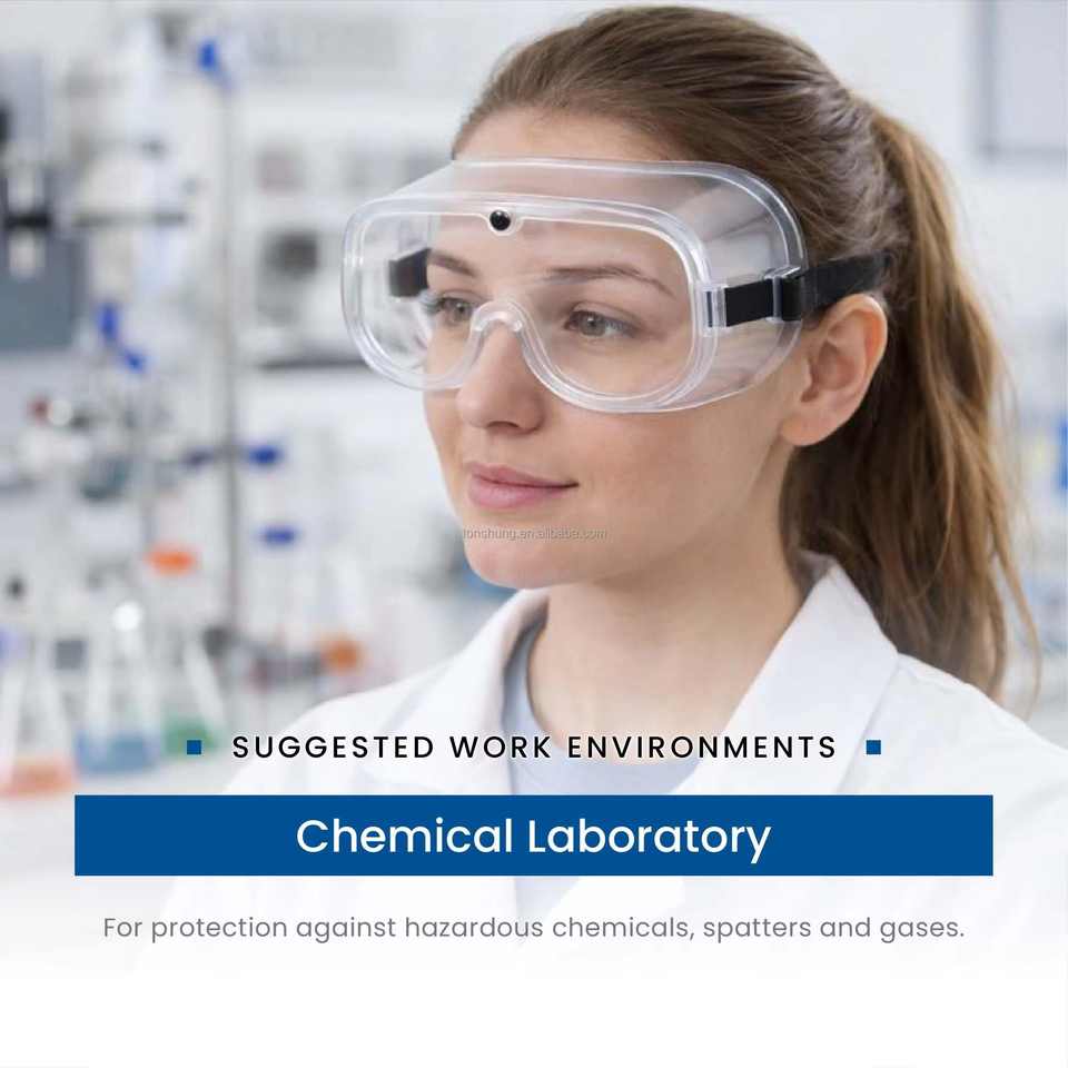 EN166 Chemical Laboratory Full Frame Safety Goggles Polycarbonate Lenses UV385 Protection Anti-Fog Coating for Auto Industries